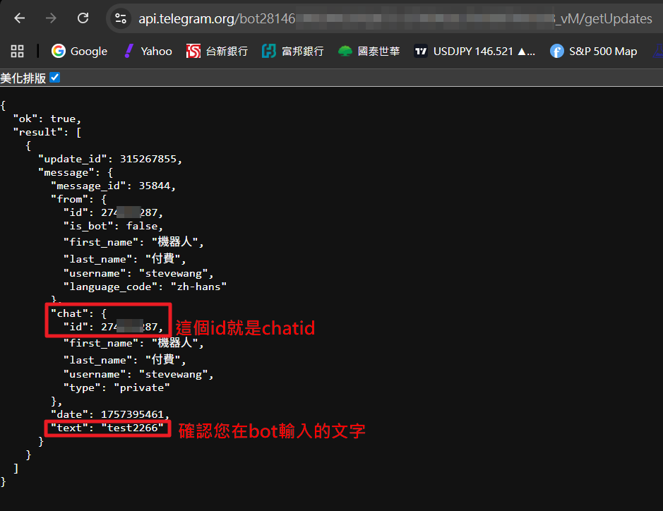 由執行的結果就可以取得您的chatid了